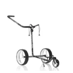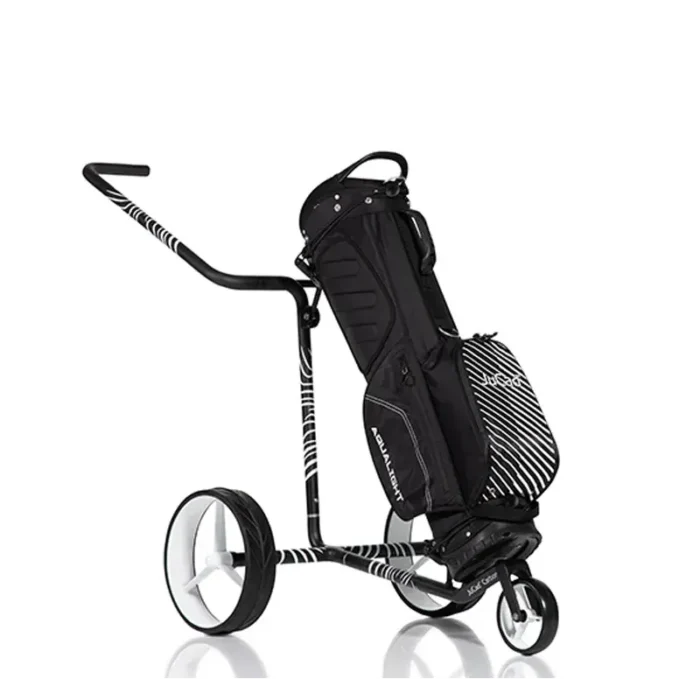 Le chariot manuel et résistant en carbone noir mat au design zèbre « 3K » séduit par son extrême légèreté et ne connait pas de limite de poids. Adapté au sacs lourds il peut être tiré ou poussé de façon à ne pas se faire mal au dos grâce à son manche adaptable en hauteur. Une fois démonté le chariot peut être mis avec le sac de golf dans une housse de voyage et constitue ainsi le compagnon idéal pour les golfeurs voyageant en avion.