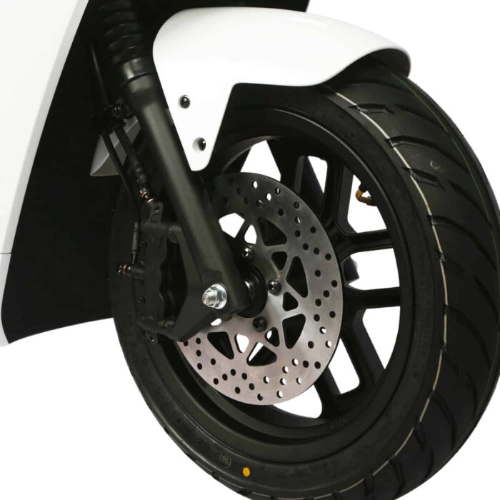 Le moteur électrique du LVNENG NCE S développe 6 600 Watts. Cela en fait l’un des équivalents 125 cm3 et périurbains les plus puissants. Son couple maximal est de 170 Nm, et sa vitesse maximale est de 90 km/h : on pourra donc emprunter les périphériques et départementales. Cela reste inférieur aux 115 km/h par exemple disponible sur le Bolide E-Trail mais grâce à cette puissance, les accélérations sont fortes, mais restent fluides. Le 100 mètres départ arrêté s’effectue en 8 secondes. Le constructeur a placé le moteur dans la roue arrière, ce qui limite fortement son entretien : ni courroie ni chaîne à graisser ou remplacer. Aussi, réaliser 100 kilomètres au guidon du LVNENG NCE S et en ville vous coûtera environ 0.60 € d’électricité. Pour en savoir plus sur les économies réalisables au quotidien, vous pouvez consulter notre simulateur d’économie.