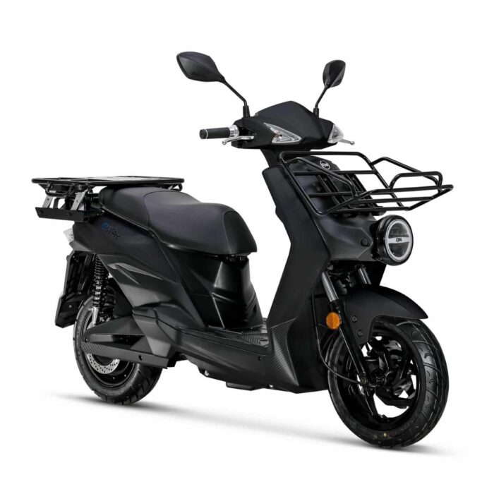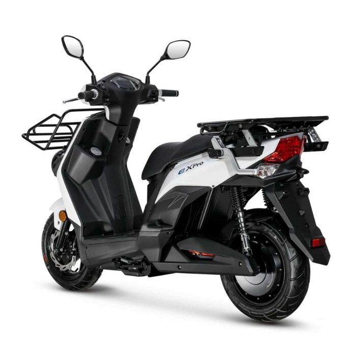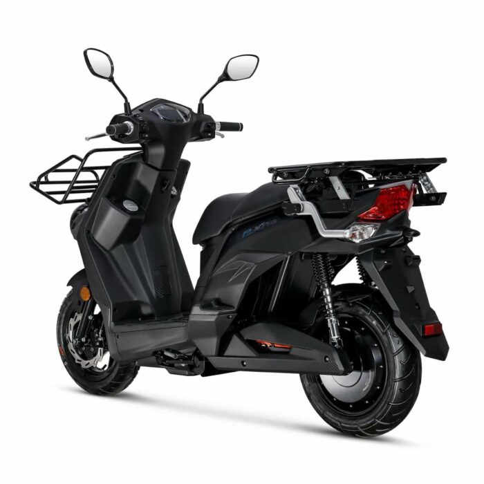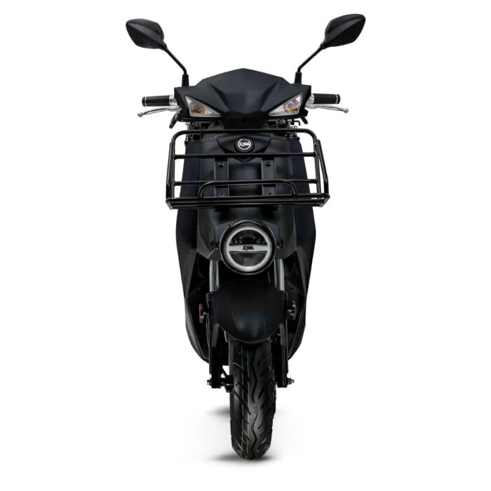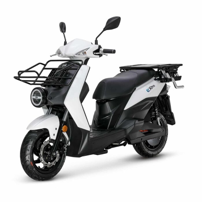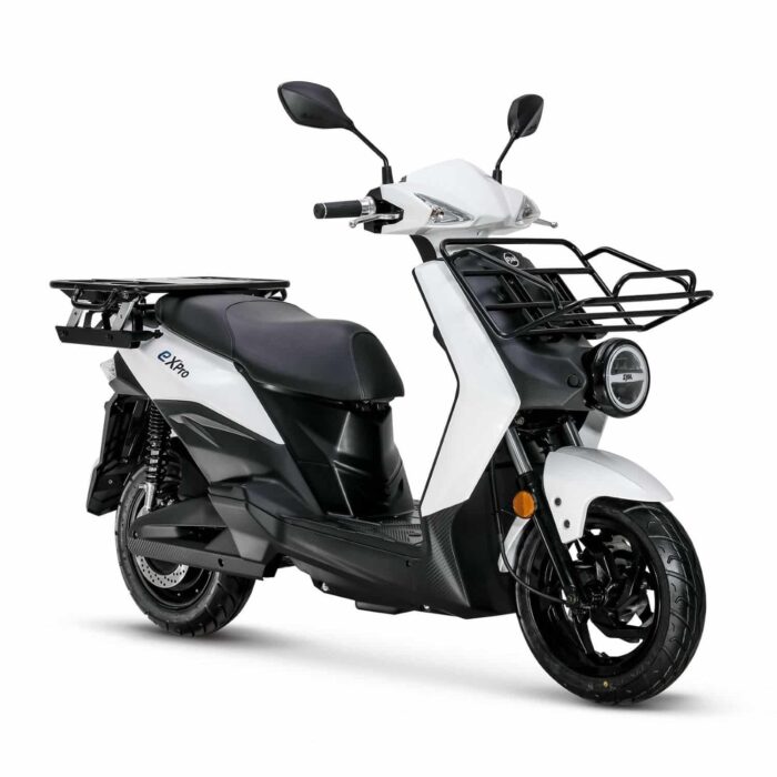 Le SYM E-Xpro est un scooter électrique de livraison équivalent 50 cm3 monoplace. Il dispose d’une autonomie maximale de 76 kilomètres et d’un moteur de 1 500 Watts.