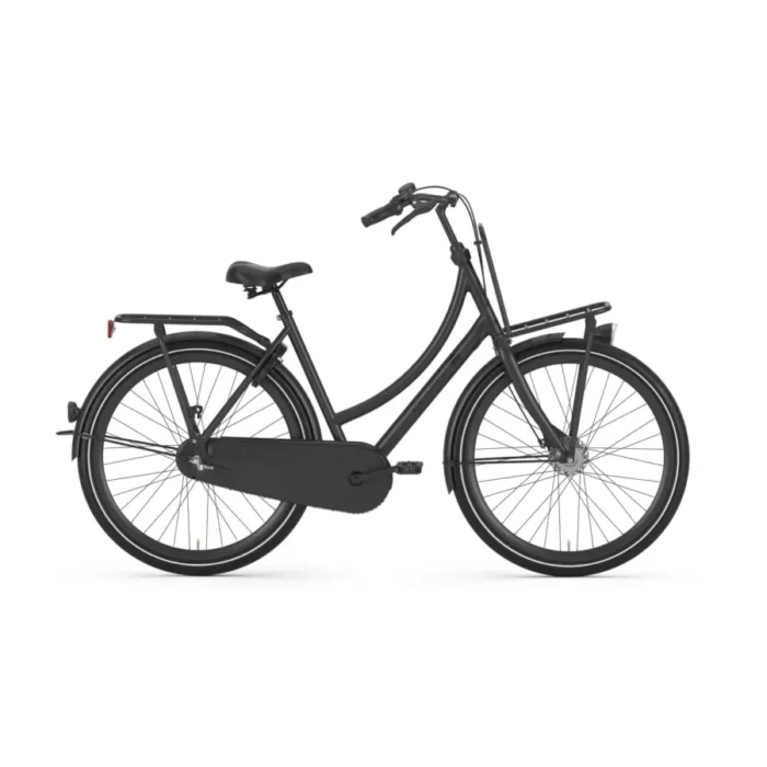 Grâce à une double béquille et un antivol de direction, vous pouvez ranger votre vélo en toute sécurité. Le moyeu Shimano Nexus à 7 vitesses intégrées offre une gamme de vitesses adaptée aux routes plates des Pays-Bas. Avec un frein à rouleau à l’avant et un frein à rétropédalage à l’arrière, vous roulez en toute confiance. Ce vélo de ville est idéal pour les déplacements au travail, au centre commercial ou au gymnase.