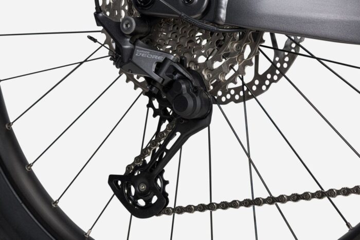L’Overvolt AM 6.7 2024 est équipé d’une cassette Shimano Deore 11 vitesses associée à une transmission 1×11 vitesses avec dérailleur Shimano Deore pour vous de permettre survoler toutes les montées tout en préservant l’autonomie de la batterie.